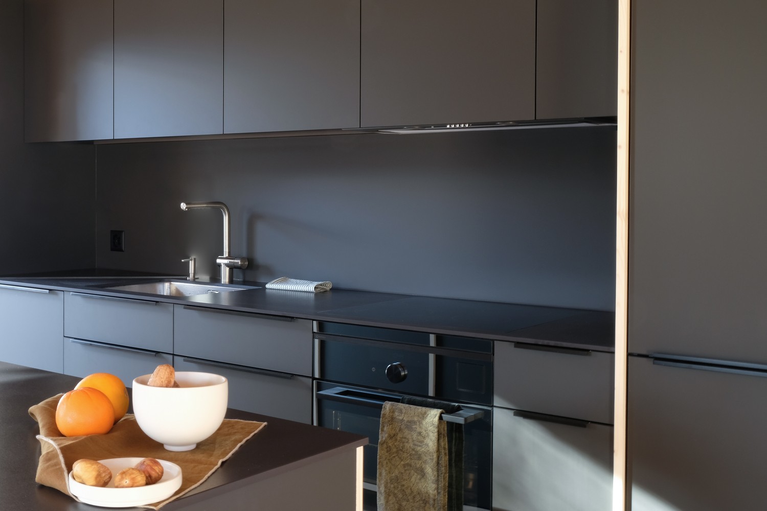 Die bestehende Raumstruktur blieb erhalten. Charakteristische Elemente wie die Täferdecke im Obergeschoss, einzelne Täferwände in den Schlafzimmern sowie die Holztreppe wurden durch Sandstrahlen aufgefrischt und in ihrer Materialität hervorgehoben. Ergänzend dazu wurden die Küche und die Nasszellen neu gestaltet und mit massgefertigten Einbaumöbeln wie Garderoben und Schränken ergänzt.